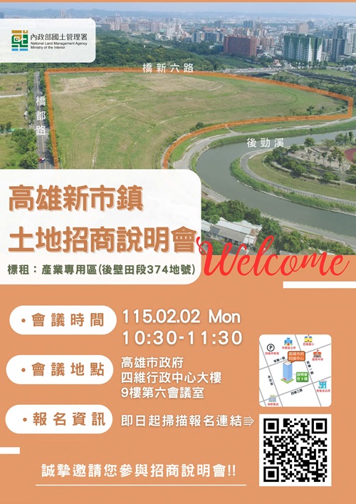 報名網址:高雄新市鎮第一期發展區產業專用區(後壁田段374地號)土地招商說明會